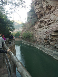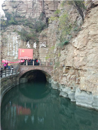 隨后,大家參觀了紅旗渠的重要工程分水嶺,并沿著曲曲彎彎的渠線步行8公里走到紅旗渠建設(shè)最艱巨的地段、總干渠的咽喉工程之一——青年洞。在參觀由林縣300名優(yōu)秀青年組成的突擊隊(duì)歷時(shí)一年5個(gè)月鑿穿的長(zhǎng)616米、高5米、寬6.2米的工程——青年洞時(shí),大家深切感受了當(dāng)年共產(chǎn)黨員、廣大青年昂揚(yáng)的革命斗志和戰(zhàn)天斗地的英雄氣概。大家無(wú)不贊嘆紅旗渠工程的艱險(xiǎn)和宏偉。
