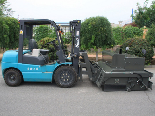 我公司生產(chǎn)的路面環(huán)保無塵清掃機(jī)是結(jié)合國內(nèi)外同類設(shè)備特點開發(fā)的新一代路面環(huán)保無塵清掃機(jī)。在工作過程中沒有灰塵,解決了道路施工中灰塵大,影響交通、環(huán)境污染的問題,響應(yīng)了國家提倡環(huán)保節(jié)能的政策。該設(shè)備在小型裝載機(jī)、滑移裝載機(jī)、叉車等基礎(chǔ)上進(jìn)行改裝,經(jīng)濟(jì)實用。采用專業(yè)、高功效的環(huán)保無塵清掃設(shè)備,替代傳統(tǒng)大量人力低效、不安全、灰塵大的清掃方法,節(jié)省人力成本,具有效率高、效果好、速度快、油耗低等特點。該機(jī)采用封閉灰斗箱,大顆粒通過刷子直接掃入灰斗箱中,配置高效吸塵器,通過風(fēng)機(jī)吸力將微灰塵吸到濾箱體內(nèi),通過濾箱體內(nèi)濾芯的過濾和反吹部件的反吹最后落入灰斗箱中,灰斗箱滿后,可以傾倒至垃圾處理點或直接裝車,清潔而環(huán)保。清掃器與原機(jī)鏟斗可快速更換,還可選配多種機(jī)具,便于實現(xiàn)一機(jī)多用(裝載、無塵清掃、除雪、掃雪、拉毛等),實現(xiàn)多功能。